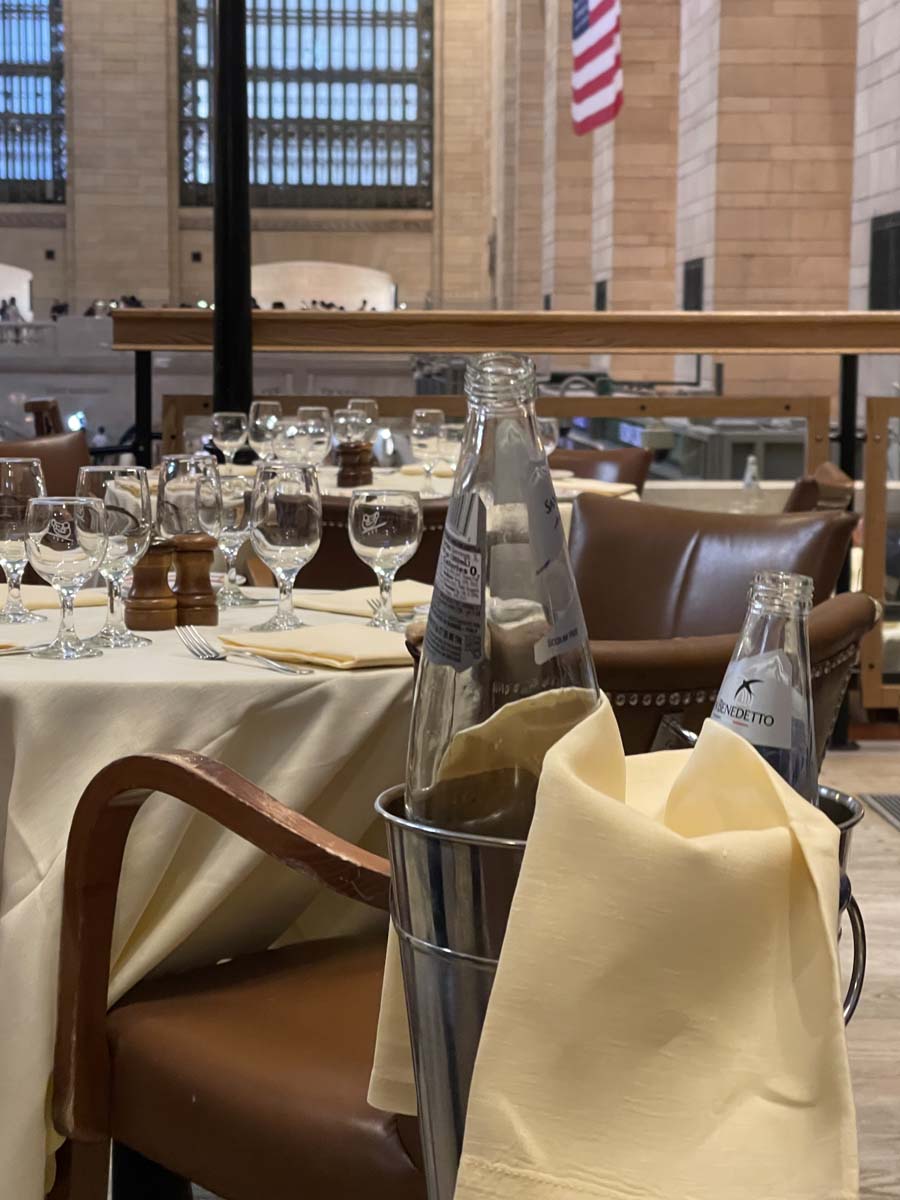 Tra i marmi eleganti della sala e il via vai incessante della stazione, il pranzo è diventato un incontro di atmosfere: la classicità italiana, l’energia cosmopolita di Manhattan e il carattere deciso dei nostri vini.