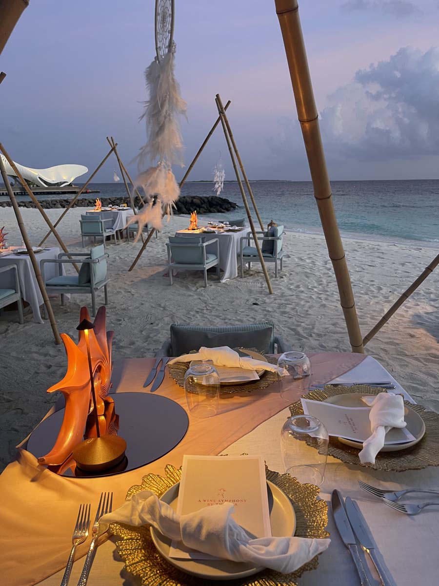 Il piacere culinario si unisce al nutrimento al ristorante FLOW, con percorsi earth-to-table divisi in vegetariani (Plantae), pescetariani (Su) e gourmet bilanciati (B’Well). MOJO accoglie con pranzi al sole e rituali del tè al tramonto, mentre Yutori offre la purezza minimalista della cucina giapponese. Anche la carta dei vini riflette intenzione e armonia—biodinamici, puliti e scelti per accompagnare il percorso di equilibrio. In questa cornice esclusiva, i vini La Scolca portano l’eleganza italiana alle Maldive, trasformando la cena wellness in una memorabile esperienza enologica italiana.